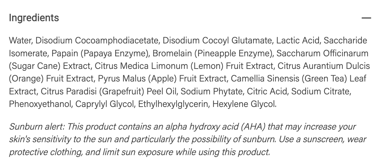 Cleansing combination skin can be challenging because it’s a little bit oily and a little bit dry. This formula blends papaya and pineapple enzymes, lactic acid and a blend of fruit acids into a plant derived cleansing base to help soften and dissolve the “glue†that binds dead skin. To counteract any potential irritation the acids and enzymes could create, we infuse plant-based polysaccharides and green tea extract to help lock in moisture and limit the look of redness.