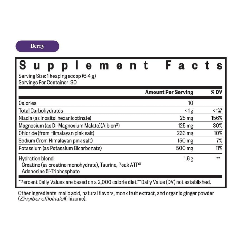 Comprehensive formulation: Contains essential electrolytes, including niacin, magnesium, and creatine to support energy production, muscle repair, and cognition & clarity. Also formulated with sodium & potassium to support hydration.*