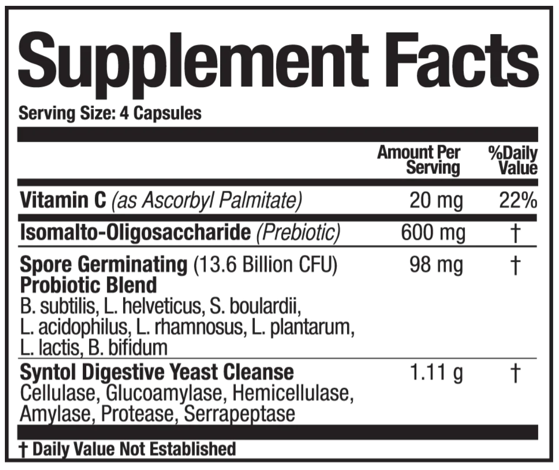 Syntol is a spore-based probiotic enzyme formula. Probiotic spores can survive harsh digestive acidity and heat intact. This therapeutic daily probiotic formula supports microbiome balance, with a gentle enzymatic yeast cleanse.