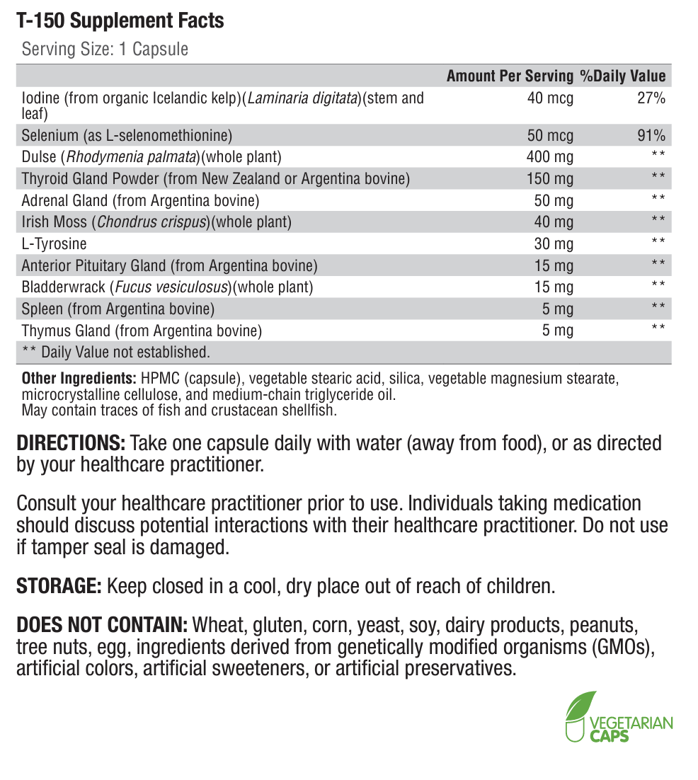 T-150Â is a comprehensive BSE-free, bovine, multi-glandular, mineral and herbal formula to support healthy thyroid function.*