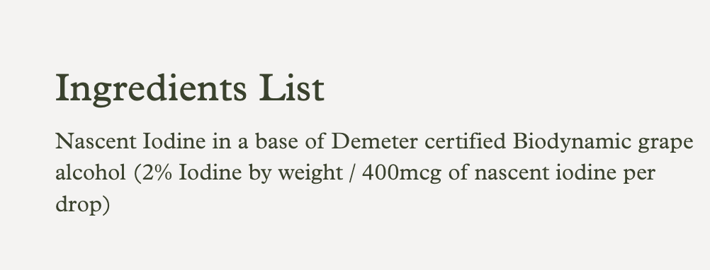 One drop = 400mcg of iodine. If using for additional energy and general improved health take up to 6 drops daily. Frequent small doses are more effective than larger amounts at less frequent intervals. Always take on an empty stomach.Â