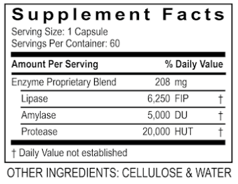 • Digestive Enzymes. This enzyme-only formula is designed to assist the proper digestion of fats, starches, and proteins with particular focus on enhanced fat digestion.*
