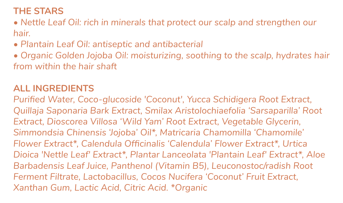 Good For:Â a balanced to dry scalp, and/or those with sensitivites, all ages (babies and up)
