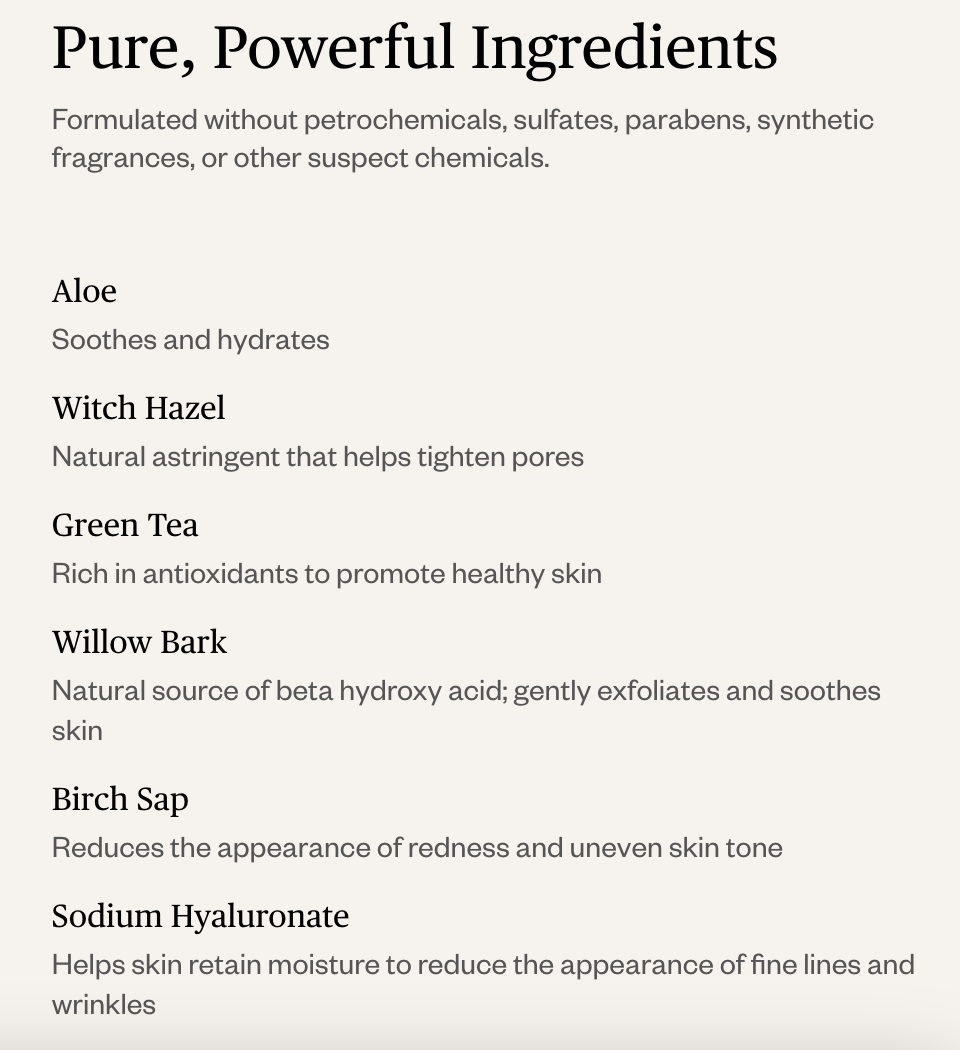 Each wipe is steeped in our 4-in-1 Essential Face Tonic—a unique formula made with ingredients like Aloe, Green Tea, and Birch Sap. Together they cleanse, exfoliate, soothe, and hydrate skin—all in one go.