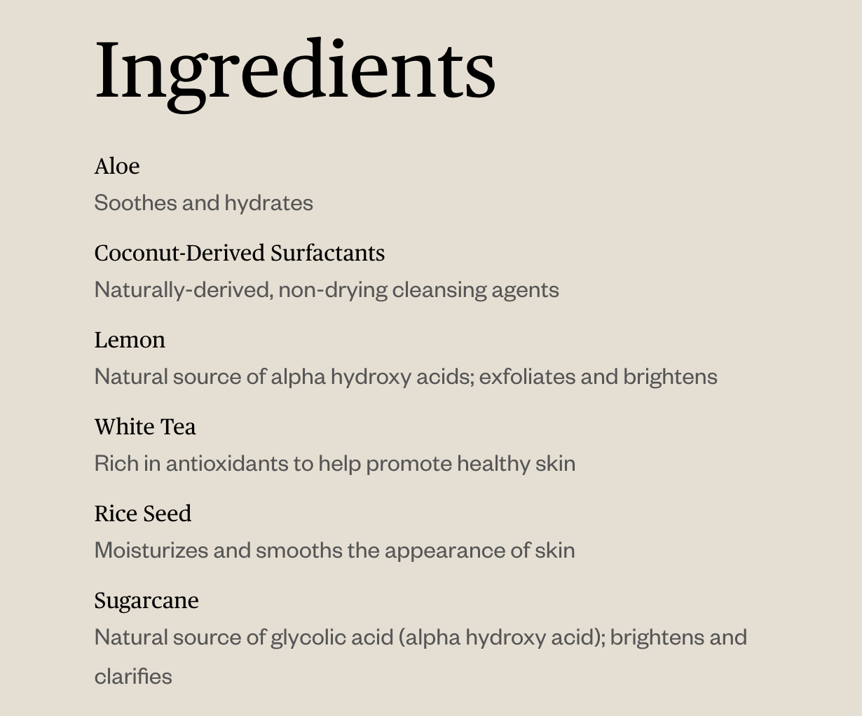 This gently exfoliating, naturally nourishing face wash lathers up nicely to deliver an invigorating daily cleanse for smooth, clear, soft skin.