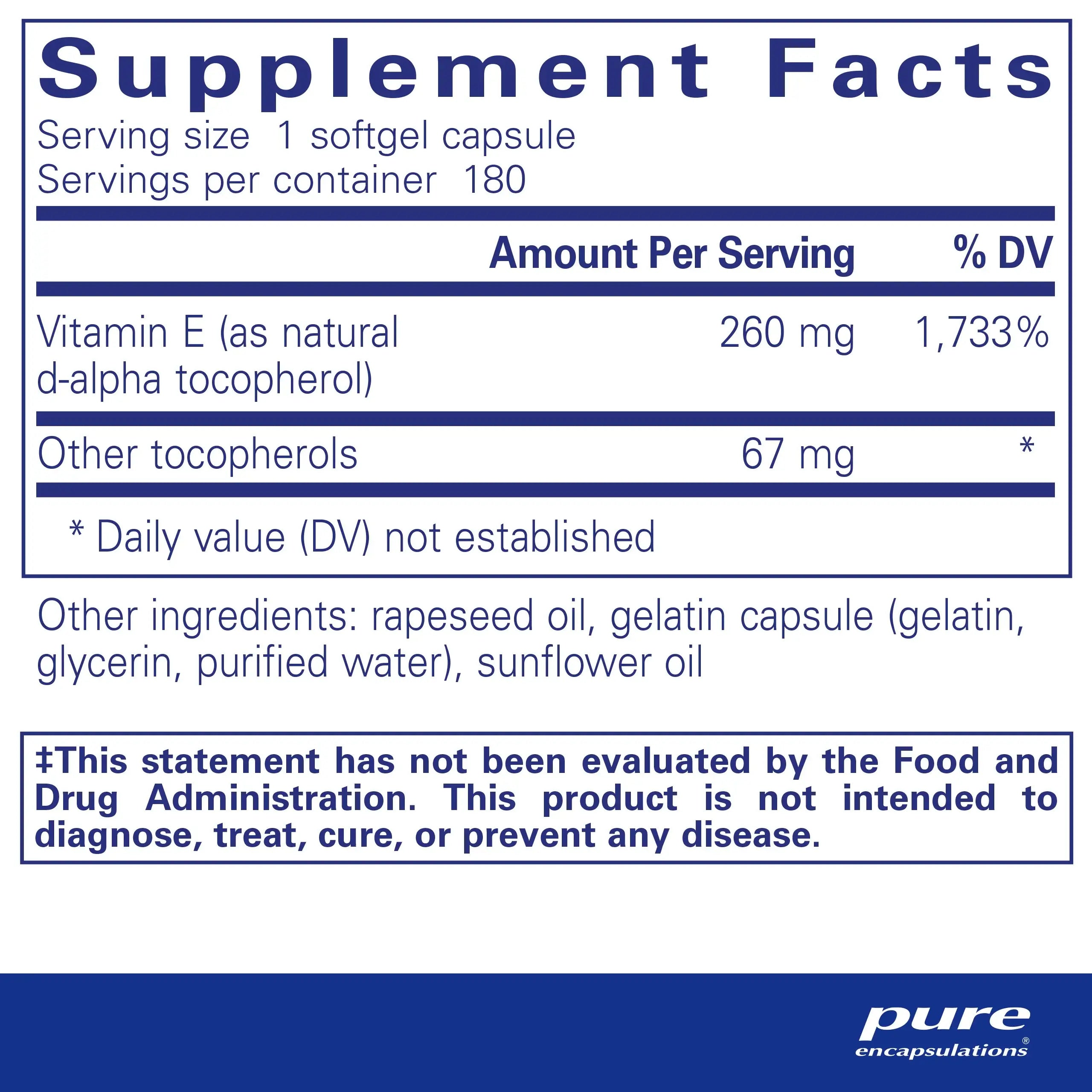 - Mixed Tocopherols: This vitamin E softgel offers mixed tocopherols including d-alpha, beta, delta, and gamma