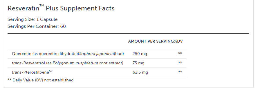 Resveratin™ Plus provides a complete bioflavonoid complex with resveratrol, quercetin, and pterostilbene. These three antioxidants work together synergistically. Pterostilbene, a new focus of scientific research, is methylated resveratrol, a bio-optimized form that complements resveratrol and quercetin. These compounds are being extensively studied in the areas of cardiovascular health and aging.*