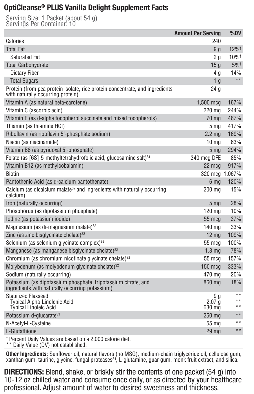 - Easy to digest and has a low-allergy potential, a pleasant taste, and no added fructose. OptiCleanse Plus not only addresses healthy detoxification, but also supports energy generation.*