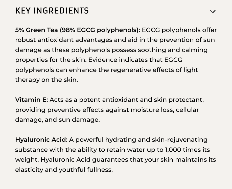 Excellent hydration for post-procedure, air travel, and mature and hormonal skin. This mask utilizes Sirt1 and NRF2 pathway activators, which are longevity pathways responsible for powerful cell-protective processes.
