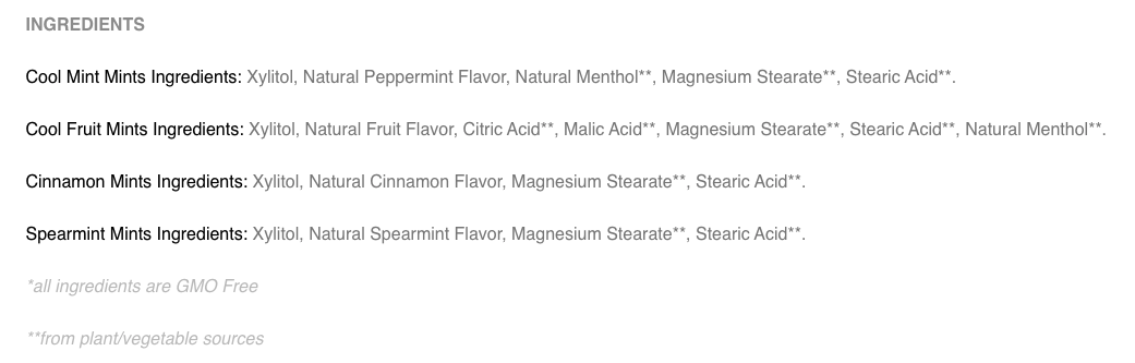 Zellie’s mints are sweetened with 100% tooth-friendly xylitol and each mint contains 0.55 grams of xylitol. Enjoy a few Zellie’s mints after each meal, snack or beverage to help neutralize acidity for a cleaner, healthier mouth.